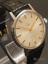 Propongo in vendita questo splendido Omega Genève del 1969, un classico dell’eleganza senza tempo, in condizioni estetiche e meccaniche eccellenti. L'orologio è stato meticolosamente conservato e presenta un movimento di rara pulizia. Di seguito i dettagli tecnici principali: Movimento: Meccanico a carica manuale, calibro di manifattura Omega 601. Anno di produzione: 1969 (verificabile dal numero di serie del movimento: 28.xxx.xxx). Quadrante: Color argento con finitura soleil, indici a bastone applicati e logo Omega in rilievo. Condizioni originali splendide. Cassa: In acciaio da 34.5 mm (esclusa corona), con fondello serrato a vite (scritta "Waterproof" ancora ben visibile). Cinturino: In pelle nera stampata coccodrillo (nuovo/ottime condizioni). Stato di funzionamento: L'orologio è perfettamente funzionante, tiene bene il tempo e ha una carica fluida. Nota per trasparenza: La corona di carica è stata sostituita nel tempo con una generica (non logata Omega). Tutto il resto dell'orologio è coevo e originale in ogni sua parte. Un pezzo ideale per chi cerca un primo approccio al vintage di lusso o per chi desidera un segnatempo affidabile, sottile ed elegante per l'uso quotidiano.