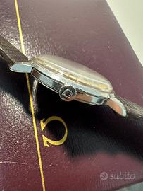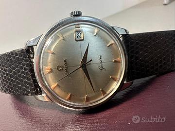 Omega Geneve anni 60’ Referenza 14724-1sc Movimento carica manuale calibro 610 Diametro cassa 35mm ewclusa corona Corona e fibbia origianali Condizioni impeccabili Fondello a scatto Completo di scatola originale Valuto scambio e permute di mio gradimento