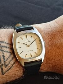 Propongo Geneve a carica manuale con una particolare forma della cassa stile quadrato e a cuscino. Stile essenziale per un orologio discreto e dal sapore anni 70. Orologio appena revisionato con certificato. Ref. 111.0123 Cassa in acciaio da 32*38 mm escluso corona. Corona originale a pressione. Quadrante color grigio con indici a bastone e lancette a filo. Vetro minerale in ottime condizioni. Movimento a carica manuale Cal. 625. Cinturino e fibbia generici nuovi. SI VENDE IL SOLO OROLOGIO NO SCATOLA NO DOCUMENTI. L'orologio funziona correttamente e tiene bene il tempo anche se non si conosce la data dell'ultima revisione. Le foto sono parte integrante della descrizione, non si accettano resi. Segui il mio profilo ho sempre un assortimento di Longines, Omega, Tag Heuer, Tudor Zenith e altri orologi vintage tank e diver vintage e contemporanei