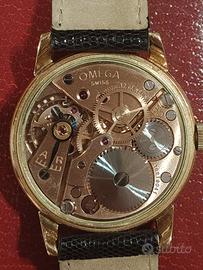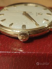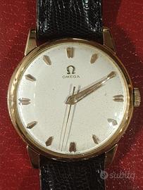 Omega in oro anni 60 a carica manuale diametro 35 , tutto originale, cinturino in pelle nuovo, revisionato l'anno scorso,scatola originale.Valuto permuta con orologio svizzero automatico di mio gradimento,solo consegna a mano!
