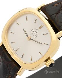 Titolo: Omega lady automatic oro 18 kt ; Peso: 23.65; Misura: 13/16; Anno: 1980 (circa); Corredo: Scatola e Garanzia del rivenditore; Referenza: 8426 ; Carica: Automatico; Calibro: 661; Rubini: 24; Colore quadrante: Argento; Corona: Oro giallo; Diametro cassa: 26mm; Ghiera: Oro giallo Materiale cassa: Oro giallo; Materiale cinturino: Pelle; Vetro: Zaffiro Cod: 8441-a
