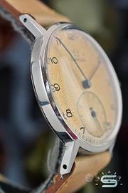 Il quadrante virato a champagne, presenta una bellissima patina con ossidazione sulla circonferenza, concentrata tra le 12 e le 3.