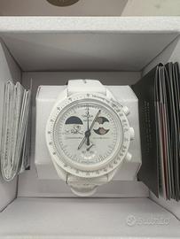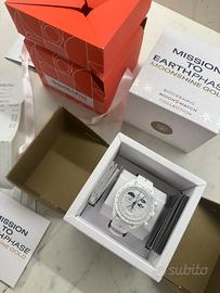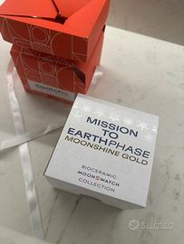 Omega Swatch MoonSwatch Mission to Earthphase Moonshine Gold NUOVO Pellicolato Full Set Vendo Swatch x Omega Mission to Earthphase Moonshine Gold in condizioni nuovo, mai indossato, ancora pellicolato. Acquistato in boutique Swatch a Cortina, completo di: •scatola originale •confezione Moonshine Gold •libretti •scontrino •tutto il corredo originale L’orologio è stato acquistato e mai utilizzato, tolto dalla borsa del negozio e riposto. Condizioni quindi pari al nuovo da negozio. La versione Mission to Earthphase Moonshine Gold viene distribuita solo in giornate selezionate ed è una delle versioni più particolari della collezione MoonSwatch, con indicatore delle fasi della Terra e della Luna e dettagli Moonshine Gold. Oggetto molto ricercato e non facilmente reperibile.