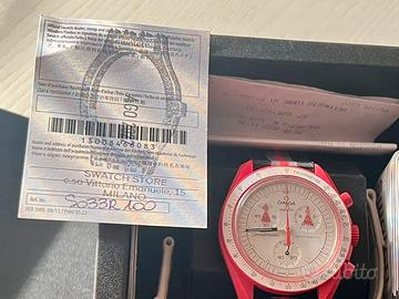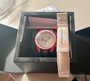 Bellissimo Omega Moonswatch Mission To Mars, usato poco (lieve graffio sul quadrante), tenuto molto bene con doppio cinturino, quello originale + uno in tessuto! Orologio originale (a differenza dei molti falsi che girano su Subito) comprato a Milano allo store di Via Vittorio Emanuele come da foto. Disponibile consegna a mano zona Milano Ovest, Novara, Como o spedizione.