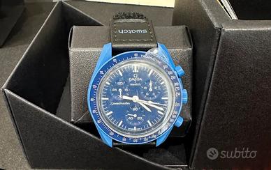 Vendo questo fantastico orologio Moonswatch Mission to Neptune, un pezzo iconico della collaborazione tra Swatch e Omega. (Prima serie) Descrizione prodotto; Lo Swatch x Omega Boiceramic Moonswatch Mission to Neptune (SO33N100) ha tonalità blu scuro sul quadrante e blu chiaro sulla cassa, che si rifanno al gigante gassoso Nettuno. Lo Swatch X Omega Mission to Neptune (SO33N100) è caratterizzato lancette e scala tachimetrica bianche, che fanno contrasto con il blu scuro del quadrante. Il Mission to Neptune (SO33N100) ha movimento al quarzo, è resistente all'acqua fino a 3 bar e presenta un cinturino in velcro nero. Condizioni: Nuovo, mai indossato – ancora con scatola originale e documenti. Modello: Mission to Neptune Collezione: Swatch x Omega Bioceramic MoonSwatch Colore: Blu profondo Materiale: Bioceramica Movimento: Quarzo Diametro cassa: 42 mm Possibilità di scambio a mano in zona Brescia e Dintorni