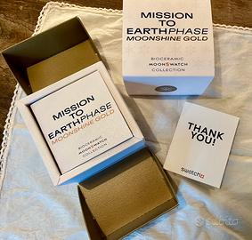 Omega Moonswatch MISSION TO EARTHPHASE - MOONSHINE GOLD Referenza SO33W701L Nuovo Mai Indossato, Garanzia Italiana Datata 17 Gennaio 2026 Completo Di Tutto Il Corredo Anche Con Scontrino Fiscale. Orologio Edizione Limitata uscito di produzione il 20 Marzo 2026. Dichiaro Che l’oggetto in Foto e’ originale. No Permute. No Perditempo. Grazie