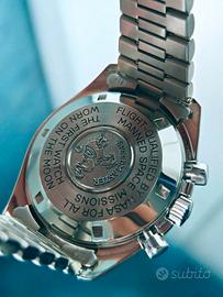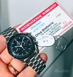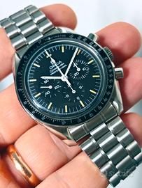 Propongo iconico Omega Speedmaster 42mm Professional Moonwatch acciaio ref. 35905000 dell'anno 1992, un esemplare che incarna il perfetto equilibrio tra il fascino del vintage e l'affidabilità del calibro 861. Caratteristiche e Condizioni: Quadrante e Lancette: Meraviglioso quadrante al trizio originale con indici virati verso una calda tonalità crema, perfettamente uniforme. Cassa: In ottime condizioni, conserva i volumi originali e le bisellature nitide. Vetro: Esalite con logo Omega centrale. Movimento: Carica manuale Cal. 861, preciso e perfettamente funzionante. Bracciale: Originale ref. 1479 con finali 812, in ottime condizioni e con minimi segni di usura. Il Corredo (Full Set Italiano): Esemplare completissimo, raro da trovare in queste condizioni di conservazione: Scatola originale grigia (condizioni eccellenti, non spellata o deteriorata come accade spesso). Controscatola bianca. Garanzia ufficiale originale dell'epoca (concessionario italiano). Tag seriale originale (particolare fondamentale per il valore collezionistico). Orologio destinato a chi cerca un "pezzo da investimento" pronto per essere indossato o esposto in collezione. Garantisco con contratto di vendita l'originalità e la lecita provenienza di questo segnatempo. NO TRUFFE E NO PERDITEMPO. Incontro solo in gioielleria su appuntamento e previo invio documenti. NON TRATTABILE PERCHÈ I PREZZI SONO AI MINIMI DI MERCATO. Per le permute solo full set.