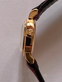 Splendido orologio Omega anni 30 in oro 18 kt perfettamente funzionante e perfetto nelle condizioni calibro 19 quadrante bianco con indici e numeri romani ad ogni quarto, corona originale marchiata Omega, cinturino in coccodrillo bordò. Certificato nella dua originalità.