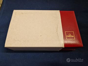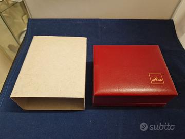 Rara scatola Omega nuova ed originale rettangolare in pelle rossa anni '60 x orologio uomo, fondo di magazzino, completa di controscatola in cartone. Le dimensioni della scatola sono 13x11x5,5 cm. Più pezzi a disposizione, ovviamente il prezzo è riferito al singolo pezzo. Spedizione da concordare.