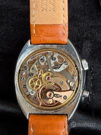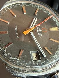 Omega Chronostop vintage grey 146.009 Dial •Quadrante: grigio, in buone condizioni. Leggeri segni di usura visibili solo in alcune condizioni di luce. •Vetro: plexy in perfette condizioni, logato omega. •Cassa: in ottime condizioni, con leggeri segni di usura. •Sfere: molto belle e coerenti con il modello ma non coeve. •Fondello: in eccelenti condizioni e con leggeri segni di usura. •Bracciale: cinturino di pelle marrone nuovo artigianale non logato. •Corona: originale, logata e coeva Omega. •Movimento: manuale, perfettamente funzionante nella parte chrono e anche in quella solo tempo. Orologio stupendo, elegante e versatile Condizioni generali: 8,5/10 Scambio con Rolex, Omega Speedmaster e Seamaster, Cartier tank e altri. Grazie mille
