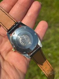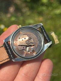 OMEGA • Modello: Seamaster Automatic • Referenza: 14744-3 SC • Anno: 1961 • Movimento: Automatico Omega (503 ) • Cassa: acciaio placcato/oro (gold capped 14k) • Diametro: 35 mm (senza corona) • Quadrante: silver con finitura soleil, indici applicati dorati • Datario: ore 3 con lente cyclope • Vetro: plexiglass originale omega • Cinturino: pelle generico ✅ Revisione febbraio 2026 💎 Condizioni: Orologio in ottime condizioni generali. Quadrante pulito e ben conservato, cassa molto bella con segni del tempo coerenti con l’età. Movimento funzionante.