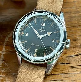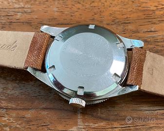 Come da titolo, vediamo questo Omega: •Cassa in acciaio ( diametro 39mm ) •Cinturino in cuoio •Movimento automatico calibro 501 •Quadrante tropical •Vetro plexi •Referenza 2913 \3 •Prodotto nel 1957 •In ottime condizioni Eseguiamo sempre una revisione completa ai nostri orologi prima di spedirli e rilasciamo una garanzia di autenticità e di buon funzionamento valida per un anno…per ogni informazione aggiuntiva non esitare a contattarci, ti risponderemo nel più breve tempo possibile!