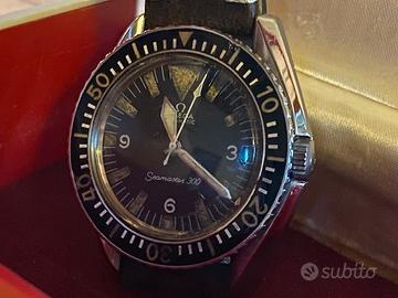 VENDO DALLA MIA COLLEZIONE PRIVATA, UNICO VINTAGE OMEGA SEAMASTER 300” BIG TRIANGLE”, REF. 165.024 IN ACCIAIO, ECCEZIONALE DI UNICO POLSO, ACQUISTATO IN FAMIGLIA IL 24-06-1969, MECCANICO A CARICA AUTOMATICA CALIBRO OMEGA 552, CASSA DA 42MM FONDELLO A VITE, CORONA A VITE, IL SEAMASTER 300 E’ STATO REALIZZATO PER UN UTILIZZO SUBACQUEO PROFESSIONALE, IL SUO DESIGN ROBUSTO E PRECISO LO HA RESO MOLTO FAMOSO, OLTRE AL FATTO DI ESSERE STATO ADOTTATO DALLA BRITISH ROYAL NAVY PER UN UTILIZZO MILITARE. OROLOGIO TOTALMENTE ORIGINALE E REVISIONATO CON SCADENZE REGOLARI (ULTIMA REVISIONE RISALE A 3 MESI FA), QUADRANTE PIACEVOLMENTE VIRATO, COSI’ COME LA GHIERA IN BACHELITE INGIALLITA MA PERFETTA. L’OROLOGIO E’ UNICO SOPRATTUTTO PER LA SUA DOTAZIONE COMPLETA, E’ PRESENTE SCATOLA E GARANZIA OMEGA ORIGINALE DELL’EPOCA A NOME DELLA MIA FAMIGLIA CHE L’HA ACQUISTATO NELL’OROLOGERIA ROMEO DI TRIESTE. IO HO VOLUTO FARE ANCHE UN CERTIFICATO DELL’ARCHIVIO OMEGA DOVE RISULTA ANCHE CHE E’ STATO PRODOTTO IL 09-08-1968. E’ PRESENTE ANCHE IL SUO BRACCIALE IN ACCIAIO ORIGINALE, HO POI ACQUISTATO UN CINTURINO IN PELLE INVECCHIATA ARTIGIANALE (IN FOTO). DICHIARO CHE L’OROLOGIO E’ ORIGINALE IN OGNI SUA PARTE.