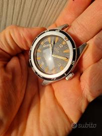 Vendo Omega Semaster 300 165.014-63. Tutto originale e coevo. Ghiera in bachelite. Cassa 39mm. Seriale 20,9 milioni. Movimento cal 550 ( destinato agli USA). Quadrante e sfere trizio. Orologio in buone condizioni. Il movimento gira e non perde tempo ma non conosco la data dell'ultima revisione. No estratto di archivio. Omega non li fa da anni. Orologio originale Omega.