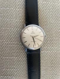 Elegante Omega Seamaster automatico d’epoca, icona dell’orologeria svizzera, perfetto per collezionisti o per chi cerca uno stile classico senza tempo. 🔹 Caratteristiche: •Movimento automatico Omega •Cassa in acciaio inox •Quadrante color crema con indici applicati •Logo Omega originale •Fondello con ippocampo Seamaster (simbolo distintivo della linea) •Vetro plexiglass •Cinturino in pelle nera (aftermarket) 🔹 Condizioni: Orologio in ottime condizioni generali considerando l’età. Quadrante con leggera patina vintage che ne aumenta il fascino. Cassa e fondello con normali segni di utilizzo. Funzionante (non testata precisione recente). 🔹 Dimensioni: Diametro circa 34–36 mm (esclusa corona) 🔹 Note: Orologio originale Omega, non rimaneggiato. Perfetto come pezzo da collezione o uso quotidiano elegante.