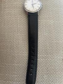 Elegante Omega Seamaster automatico d’epoca, icona dell’orologeria svizzera, perfetto per collezionisti o per chi cerca uno stile classico senza tempo. 🔹 Caratteristiche: •Movimento automatico Omega •Cassa in acciaio inox •Quadrante color crema con indici applicati •Logo Omega originale •Fondello con ippocampo Seamaster (simbolo distintivo della linea) •Vetro plexiglass •Cinturino in pelle nera (aftermarket) 🔹 Condizioni: Orologio in ottime condizioni generali considerando l’età. Quadrante con leggera patina vintage che ne aumenta il fascino. Cassa e fondello con normali segni di utilizzo. Funzionante (non testata precisione recente). 🔹 Dimensioni: Diametro circa 34–36 mm (esclusa corona) 🔹 Note: Orologio originale Omega, non rimaneggiato. Perfetto come pezzo da collezione o uso quotidiano elegante.