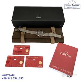 Orologio originale Omega in ogni sua parte, in ottime condizioni come nuovo, segni di usura assenti o appena visibili, full set (scatola, accessori vari, garanzia card originale Omega, valida 5 anni), garanzia/dichiarazione di vendita nostro negozio valida per 12 mesi.