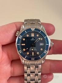 Vendo omega seamaster diver 300 m Colore quadrante blu Cassa 39 mm Movimento al quarzo Piccole airlines sul bracciale Anno 2001 Corredo quasi completo Orologio reso celebre dal film di 007