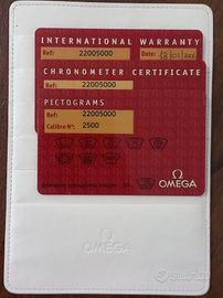 Originale Omega Seamaster Planet Ocean ref.2200.50.00 (prima serie Planet Ocean anno 2006))cassa in acciaio del diametro di 45mm esclusa corona, movimento a carica automatica cal.2500 Omega Co-Axial,vetro zaffiro,bracciale in acciaio perfetto, rigidissimo e completo di tutte le maglie. Perfettamente funzionante e preciso.Orologio in splendide condizioni. Corredato dalle tutte e tre card Omega,controscatola, scatola, portaganzia in pelle e garanzia ufficiale Omega di concessionario italiano prima serie anno 2006 Valuto permute con Rolex, Omega, Zenith, Tudor, Cartier, Longines, Breitling, Eberhard Consegna e pagamento solo nella mia banca