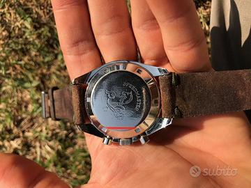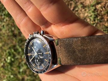 Orologio Omega Speedmaster 145.012 anno 1967 CALIBRO 321 disponibole a parte anche Bracciale 1039 originale omega SENZA FINALI e LIBRETTO GARANZIA COEVA TIMBRATO IN BIANCO. Quadrante virato come si vede da foto e orologio bello e vissuto. L’orologio è appena stato revisionato ed è in garanzia. Orologio TUTTO COEVO tranne la CORONA DI CARICA. Seriale 27 milioni. Valuto offerte e scambi con rolex omega tudor breitling cartier anche conguaglio a mio sfavore. Preferibile contatto su subito o whatsapp