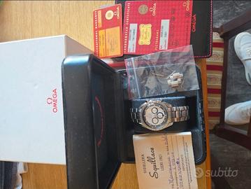 Vendo splendido Omega Speedmaster automatico ref. 3506.31.90, in edizione limitata. cronografo della celebre linea Speedmaster con quadrante chiaro e cassa in acciaio. Orologio elegante e sportivo, perfetto sia per uso quotidiano sia per appassionati della collezione Speedmaster. Caratteristiche: Cassa in acciaio Quadrante argento/bianco con contatori cronografici Movimento automatico Omega Cronografo e datario Bracciale originale Omega in acciaio Diametro circa 42 mm Vetro zaffiro Orologio perfettamente funzionante e tenuto con cura. Normali segni d’uso compatibili con il tempo. Disponibile per visione e prova. Per ulteriori informazioni o foto contattatemi.