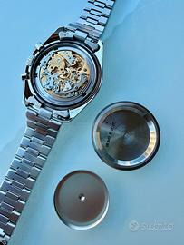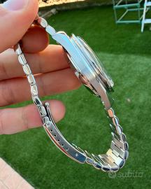 Vendo Omega Speedmaster Professional Moonwatch ref. 3590.50, icona assoluta dell’orologeria e modello storico legato alle missioni NASA. Esemplare completamente originale e in condizioni eccellenti, ideale sia per collezionisti sia per uso quotidiano. Caratteristiche principali: •Referenza: 3590.50 •Movimento: meccanico a carica manuale, calibro Omega 861 (molto ricercato) •Cassa in acciaio inox •Lunetta nera con scala tachimetrica •Quadrante nero con cronografo •Vetro esalite originale con logo Omega al centro •Fondello inciso NASA “Flight-Qualified” Condizioni: Orologio in ottime condizioni estetiche e perfettamente funzionante. Tiene bene il tempo e non necessita di interventi. Segni d’uso minimi e coerenti con l’età. Originalità: Tutti i componenti sono originali Omega (vetro, corona, bracciale, ecc.). Bracciale: Bracciale originale completo di tutte le maglie, adatto a qualsiasi polso. Corredo: •Scatola originale Omega •Garanzia internazionale •Libretti •Tag ➡️ Full set completo Disponibile per consegna a mano o spedizione assicurata.
