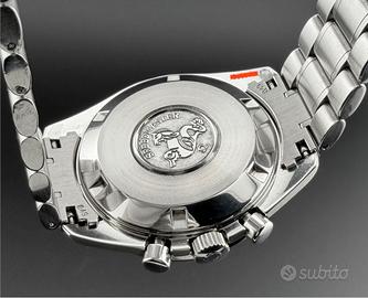Splendido Omega Speedmaster ref. 3594.50.00 “Replica”, sfere Broad Arrow, ispirato al ore-moon del 157, cal. 1861, vetro esalite, bracciale con chiusura a doppio rilascio, ottime condizioni, no corredo, garanzia 12 mesi reseller febbraio 2026.
