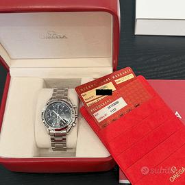 SECONDO POLSO Omega ref. 35135000 Speedmaster Date. L’orologio in vendita è stato appena revisionato presso il nostro centro assistenza autorizzato e certificato Omega. Cassa in ottime condizioni. Lunetta con scala tachimetrica è in ottime condizioni. Bracciale Omega in ottime condizioni. Quadrante in ottime condizioni. Vetro zaffiro eccellenti condizioni. Scatola Omega interna, garanzia originale e pittogramma, libro omega, nostro certificato di autenticità e lecita provenienza. 2 anni di garanzia, dalla data di acquisto. La garanzia copre problemi meccanici legati al movimento non correlati a negligenza o qualsiasi tipo di danno procurato dal cliente, certificato di autenticità e lecita provenienza. SECOND HAND Omega ref. 351350 Speedmaster Date. The watch for sale has just been inspected by our authorized and certified Omega service center. The case is in excellent condition. The bezel with tachymeter scale is in excellent condition. Omega bracelet is in excellent condition. Black dial in excellent condition. Sapphire crystal in excellent condition. Omega box ( inner ), original warranty and pictogram, omega book, our certificate of authenticity and legitimate origin are included. 2-year warranty from the date of purchase. The warranty covers mechanical issues related to the movement not caused by negligence or any type of damage inflicted by the customer. Certificate of authenticity and lawful origin.