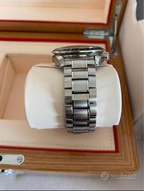 In garanzia Omega service in condizioni eccellenti. Coevo in full set con fatture di acquisto e revisione. Orologio rarissimo che in colore panda si attesta anche a 7000 euro.