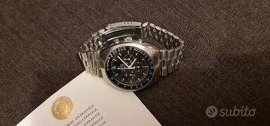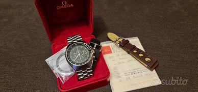 Bellissimo orologio marca Omega mod. Speedmaster Mark2 anno 1971 con scatola e garanzia originale, con doppio cinturino e vetro con ghiera x ricambio nuovo, orologio completamente originale in condizioni strepitose 54 anni ma perfettamente funzionante, (effettuato revisione)