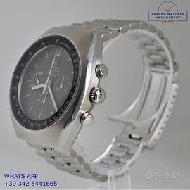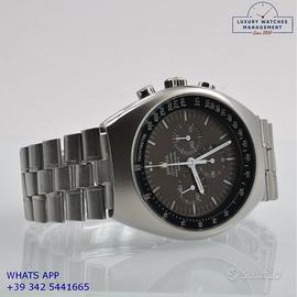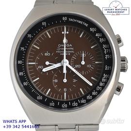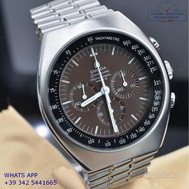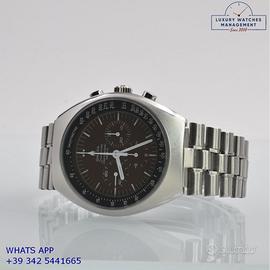 Omega Speedmaster Professional Mark II cronografo acciaio, anno di produzione 1970, vetro minerale piatto, quadrante colore marrone cioccolato a tre contatori con indici e sfere al trizio, movimento meccanico a carica manuale, bracciale acciaio con chiusura deployante originale Omega.