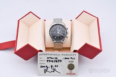 In vendita Omega Speedmaster Professional ref. 3590.50 anno 2002, uno dei modelli più iconici e ricercati della casa svizzera. L’orologio si presenta in condizioni estetiche eccellenti, curato in ogni dettaglio e perfettamente conservato. Caratteristiche principali: Referenza: 3590.50 Anno: 2002 Movimento: carica manuale 1861 Quadrante: nero con indici e sfere originali Vetro: esalite Dotazione : Scatola service Omega Garanzia originale L’orologio è in perfetto stato di funzionamento e viene venduto con 2 anni di garanzia sul funzionamento, per la massima tranquillità dell’acquirente. Un pezzo intramontabile, ideale sia per collezionisti che per appassionati, simbolo della storia dell’orologeria. Disponibile per visione e prova. Spedizione in tutta Italia si accetta SOLO pagamento anticipato con bonifico bancario