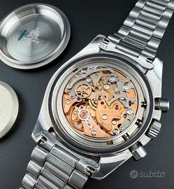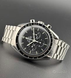Splendido Omega Speedmaster Moonwatch 145.022 ST 78 S R long, seriale 44.818.xxx, cal. 861, ghiera DNN, dial T swiss made T in patina, vetro originale, bracciale 1171 finali 633, tutto coevo, condizioni ottime, solo orologio.
