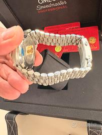 Vendo splendido Omega Speedmaster Professional Moonwatch con movimento calibro 3861, versione con vetro L’orologio è del 2022 in condizioni pari al nuovo e completo di tutto il corredo originale. Dettagli: •Modello: Omega Speedmaster Professional Moonwatch •Referenza: 310.30.42.50.01.001 •Movimento: Omega calibro 3861 (Master Chronometer) •Diametro: 42 mm •Vetro: Hesalite •Bracciale acciaio originale Omega con tutte le maglie •Anno: 2022( ancora in garanzia omega 2027) •Condizione: come nuovo •Corredo: full set valuto permuta con rolex date just explorer Omega reduced , Panerai luminor , Cartier pasha , Tudor big block. ecc ecc dichiaro che l’orologio e originale e di lecita provenienza