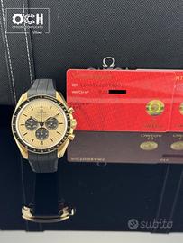 Vendo Omega Speedmaster Moonwatch Referenza 31062425099001 Originale DIMENSIONI CASSA-42mm MATERIALE CASSA-Oro giallo MATERIALE BRACCIALE/CINTURINO-Gomma con deployante in oro giallo COLORE QUADRANTE-Oro MATERIALE GHIERA-Ceramica MATERIALE VETRO-Zaffiro MATERIALE FONDELLO-Zaffiro MOVIMENTO-Automatico SCATOLA-Omega GARANZIA-Omega del 2023 NOTE-Nuovo (Listino 36200€) Tel Mostra numero