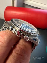 Stupendo Omega Moonwatch del 1995 con stupendo quadrante leggermente virato al grigio e indici ingialliti perfettamente…completo della sua scatola, controscatola e della sua garanzia originale…é in condizioni spettacolari e le foto non rendono giustizia alla sua bellezza.