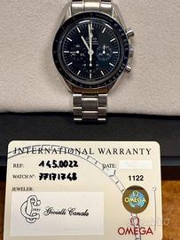 Omega Speedmaster Moonwatch Professional, ref. 145.0022. Coevo 100%.42mm, manuale, movimento 861. Full set, libretti, scatola e garanzia Omega card revisionato totalmente 11/2024. Tutte le maglie presenti +1. Ancora in garanzia fino al 2026. Mai lucidato, unico proprietario. NO PERMUTE. No curiosi e perditempo. No offerte al ribasso, Grazie.