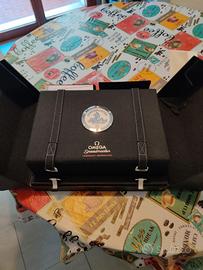 Ottime condizioni, orologio del 2020 con movimento 1861. Vetro esalite e fondello in acciaio. Completo del suo corredo originale, con scatola, 3 cinturini, loupe e fermacarte omega. Comprato da rivenditore secondo polso nel 2023 e portato pochissimo da allora.
