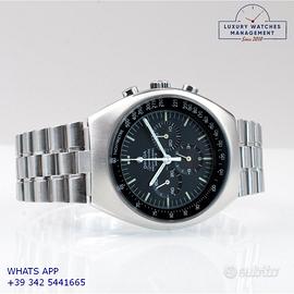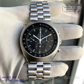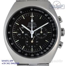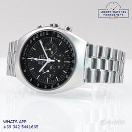 Omega Speedmaster Professional Mark II cronografo acciaio, anno di produzione 1971, vetro minerale piatto, quadrante colore nero scala tachimetrica graduata 500, indici e sfere al trizio, movimento meccanico a carica manuale, bracciale acciaio con chiusura deployante originale Omega.