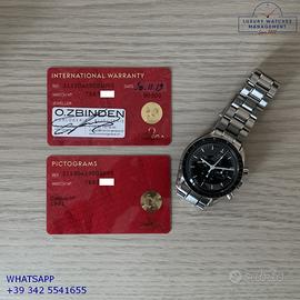 Orologio originale Omega in ogni sua parte, praticamente mai usato, in ottime condizioni come nuovo, segni di usura assenti o appena visibili, full set (scatola, accessori vari, garanzia card ufficiale Omega), garanzia/dichiarazione vendita nostro negozio valida per 12 mesi.