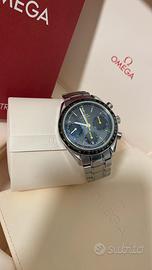Offro originale omega speedmaster racing coaxial , ruote a colona , cassa da 40 mm, quadrante soettacolare racing colore titanio cangiante , con la luce fa riflessi neri, grigio scuro e alluminio, molto sportivo e accattivante con scritta speedmaster gialla e lancrtte crono gialle, calibro coaxiale omega 3330 revisionato 2021 , viene fornito con scatola controscatola, libretto,porta documenti , NO CARD