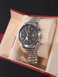 OMEGA Speedmaster Reduced – Set Completo – Ref. 3510.50.00 In vendita l’iconico Omega Speedmaster Reduced, la variante automatica più apprezzata del leggendario cronografo, perfetta per chi cerca l’estetica intramontabile del "Moonwatch" con dimensioni più contenute e la comodità del movimento automatico. Dettagli dell'Orologio Referenza: 3510.50.00 Seriale: 57679XXX (Coerente con il periodo di produzione) Data di acquisto: 04/03/2025 presso noto negozio di orologeria vintage e provvisto di regolare fattura, recentemente revisionato prima dell'acquisto. Cassa: Acciaio inossidabile da 39mm (esclusa corona) Quadrante: Nero con indici a bastone e tre sotto-contatori Vetro: Esalite Movimento: Calibro Omega 3220 (Automatico) Bracciale: Originale in acciaio con chiusura deployante, maglie extra incluse. Condizioni e Corredo L’orologio si presenta in ottime condizioni estetiche e funzionali. I tasti cronografici sono reattivi e il reset è preciso a ore 12. Il set è eccezionalmente completo, ideale per collezionisti: Garanzia Internazionale originale (International Warranty Card) timbrata da concessionario ufficiale giapponese. Scatola originale Omega (modello "Red Box"). Maglie aggiuntive per il bracciale. Spedizione assicurata tracciata in tutta Italia. Disponibile per ulteriori foto o video su richiesta. Massima serietà, no perditempo o offerte ridicole. Perché questa referenza è speciale? La 3510.50.00 è diventata un "must-have" nel mercato del vintage moderno. Grazie al suo diametro di 39mm, si adatta perfettamente a ogni polso, offrendo lo stesso DNA del fratello maggiore (Professional) ma con un design più sottile e la praticità della carica automatica. Trovarlo con la garanzia originale del 2002 è un valore aggiunto notevole per la rivalutazione futura.