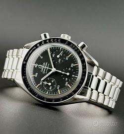 Splendido Omega Speedmaster Reduced ref. 35105000, cassa da 39mm, automatico cal. 3220, vetro plastica, quadrante trizio, condizioni eccellenti, tutto originale, corredo completo con garanzia card stampata.