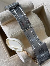 condizioni specificate: leggeri segni di normale utilizzo nel complesso, leggeri segni di usura sul bracciale, il bracciale mostra solo un po' di allungamento, segni visibili di usura sulla fibbia, leggeri segni di usura sulla lunetta, il fondello mostra segni visibili di utilizzo, la scatola dell'orologio mostra leggeri segni di utilizzo