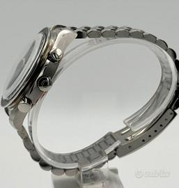 Quadrante pulito e leggibile, con layout cronografico classico.