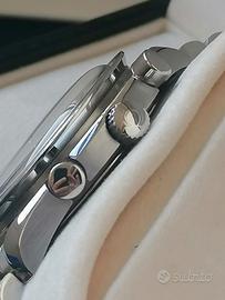 Omega Speedmaster Racing Schumacher World Champion 2000 in edizione limitata e numerata a 4000 pezzi Ref. 35173000 Full Set. Il quadrante argentè mostra una marcata scacchiera arancione sul bordo e presenta inoltre la scritta "RACING" al di sopra del contatore cronografico delle ore 6 proprio a richiamo delle corse. La cassa in Acciaio è animato dal calibro automatico Omega 3220 ed è protetto da un fondello in acciaio al di sopra del quale è inciso il nome del campione tedesco oltre al suo autografo e al numero dell'orologio. Il diametro della cassa è di 39 mm. Tutto Originale, Tutto Marcato, Ottime Condizioni e Perfettamente Funzionante. Preferisco contatto diretto al 3331967033 anche su WhatsApp
