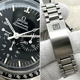 Eccezionale Omega Speedmaster ST145.022 quadrante s r lunghe, anno 1986, totalmente originale e coevo, mai lucidato, quadrante trizio in patina perfetto, bracciale 1171/1 coevo, corredo completo con garanzia ufficiale traforata scritta a mano e verificata, raro libretto del calibro.