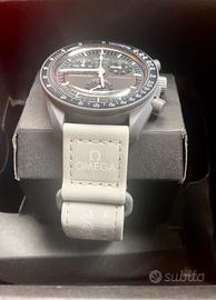 Omega Speedmaster Swatch Mission to Mercury della collezione Moon Swatch; nuovo in bioceramica completo di scatola, controscatola e tutti gli accessori.