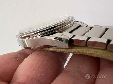 L’orologio presenta segni di utilizzo, presenti segni sul vetro plexiglass e su una delle anse (come visibile in foto) oltre a normali righe sul bracciale.
