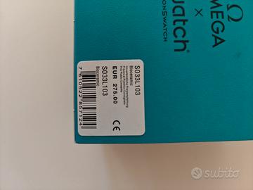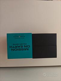 Orologio della collaborazione Omega x Swatch, modello Mission on Earth: Polar Lights. Design ispirato al fenomeno dell’aurora boreale, con cassa in bioceramic, quadrante verde con dettagli luminosi e grafica esclusiva della collezione MoonSwatch. Movimento al quarzo Swiss Made, cinturino in velcro coordinato e packaging originale Swatch. Modello molto ricercato, ideale sia da indossare che da collezione.
